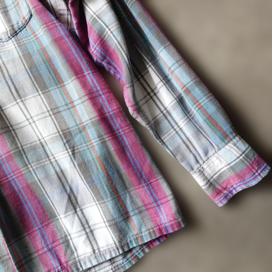 ■商品名ユーズド ■色 ■サイズM ■肩幅 44cm ■身幅 49cm脇下採寸 ■着丈 63cm首下より採寸 ■袖丈 69cm ■素材 コットン ポリ ●商品説明 アメリカ製のネルシャツになります オープンカラーのボックスのボードシャツタイプ です ライトネルで1年通してきやすいシャツです