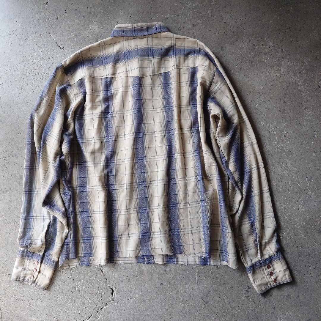 ■商品名deecee ■色ベージュ ■サイズxl ■肩幅 51cm ■身幅 62cm脇下採寸 ■着丈 66 cm首下より採寸 ■袖丈67 cm ■素材 コットン ポリ ●商品説明 DeeCee のウエスタンシャツになります ランチ ウェアなどを作るアメリカの名ブランケットになります グラデーションのオンブレがとてもかっこいい お色です 裾がフラットにカットオフされ 丈が短くなっております。 他目立つダメージなどございません。