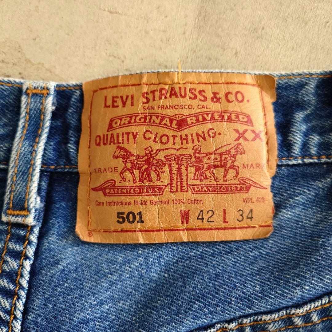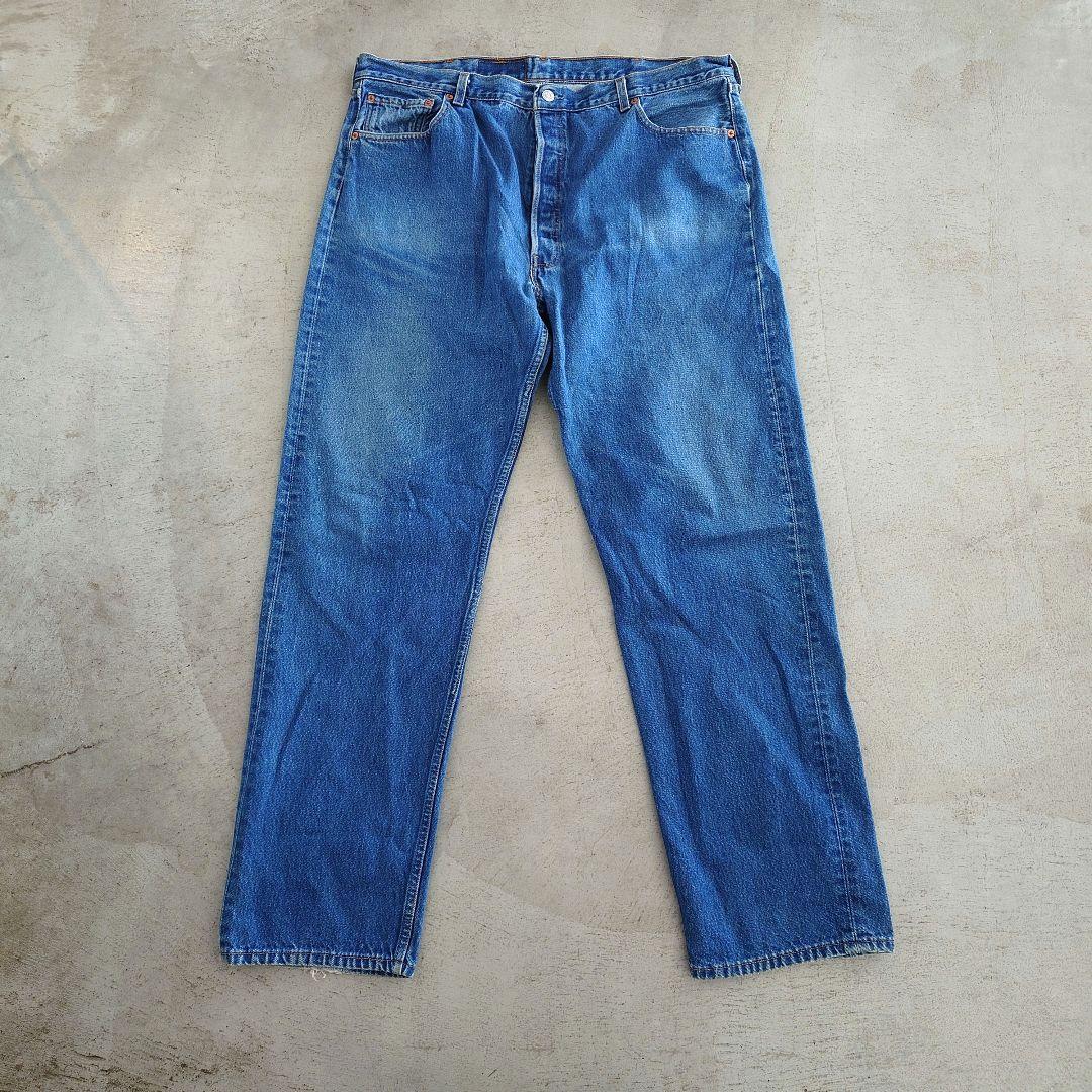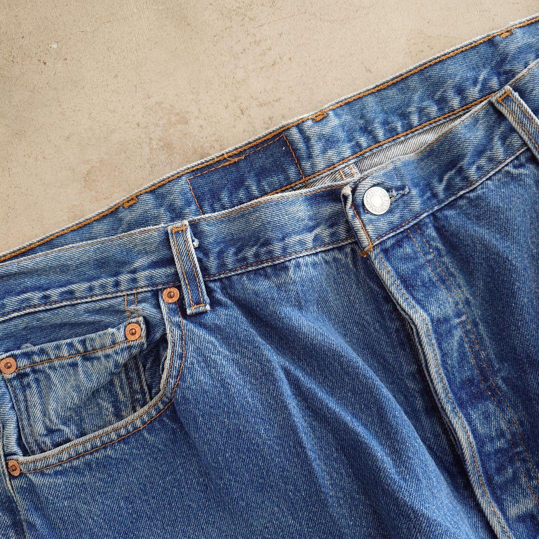 ■商品名Levis 501 米国最終 ■サイズW42 L34 ■ウエスト 108cm ■股上35 cm ■股下 86cm ■ヒップ約132cm ■もも 72cm ■ボタン裏552 ■サンアンジェロ アメリカ製 ■97年製 ●商品説明 リーバイスの大きいサイズのアメリカ製 サイズ40オーバーは日本では展開してなく お探しだった方は是非。 色落ちもアメリカ製らしい自然なきれいなブルー ダメージもすくない良品です。 大き目でベルトで絞って大きくロールアップもおすすめです。