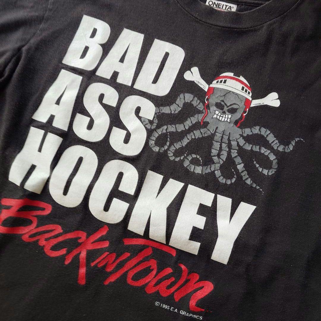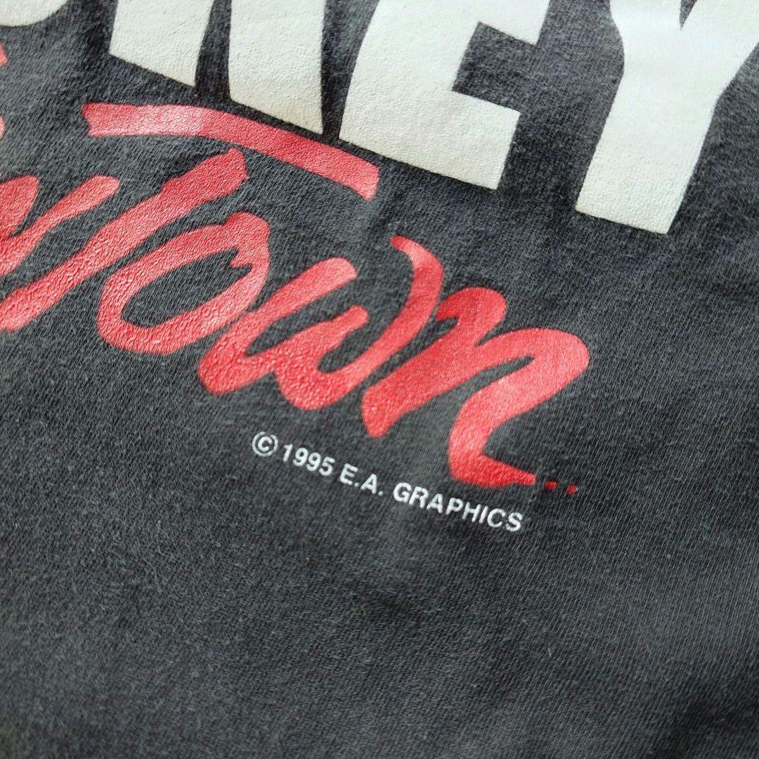 ■商品名ビンテージT ■色ブラック ■サイズL ■肩幅 54cm ■身幅 54cm脇下採寸 ■着丈 65 cm首下より採寸 ■袖丈 21cm ■素材 コットン ■アメリカ製 ●商品説明 90年代 アメリカ製 オニータのボディのプリント T シャツです ホッケーチームのプリントです 95年のグラフィックになります とてもかっこいいグラフィックです ダメージもなく綺麗なお品です