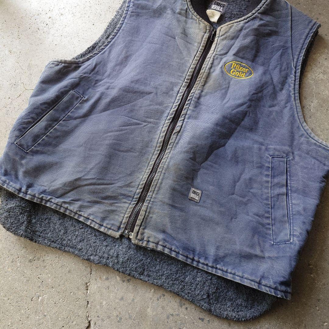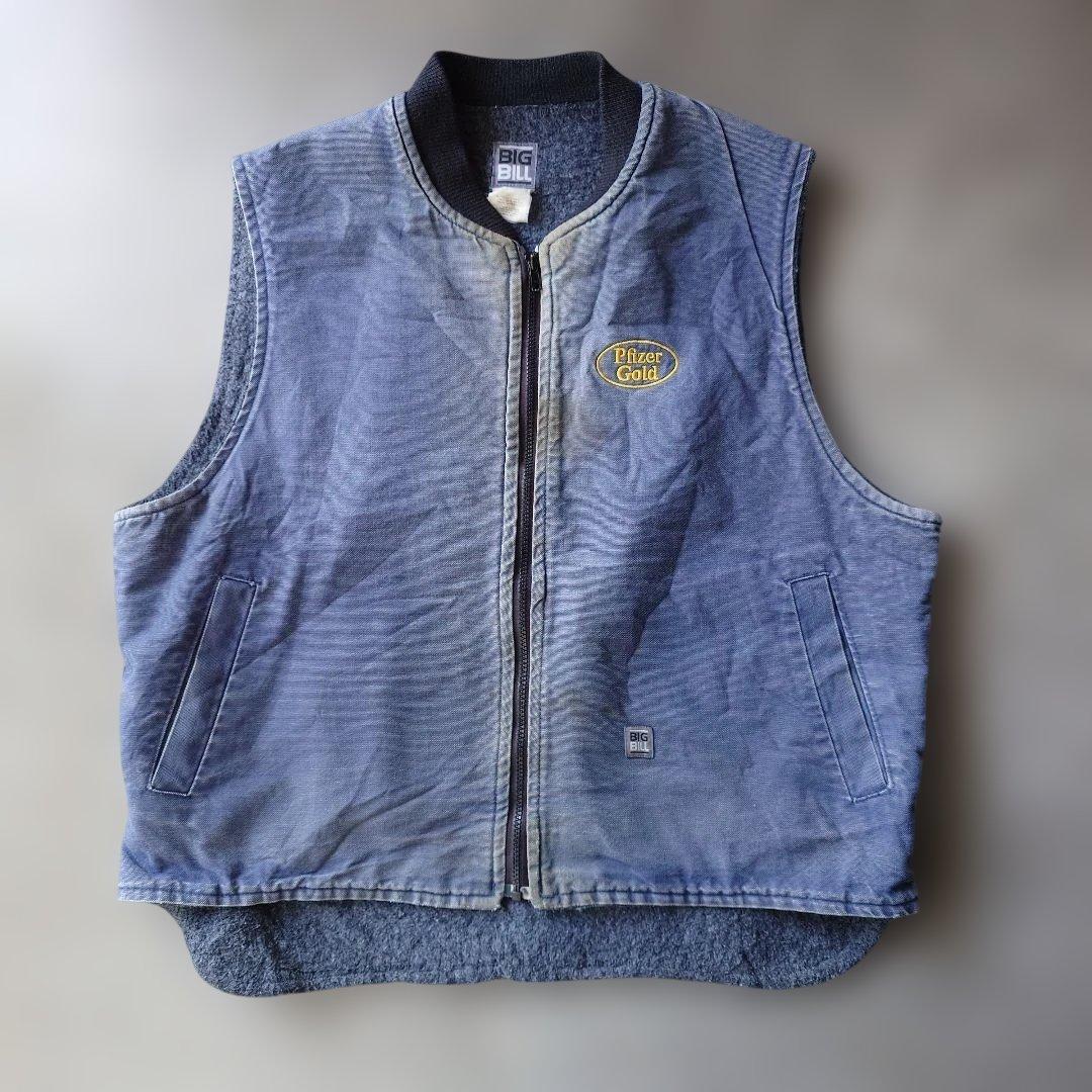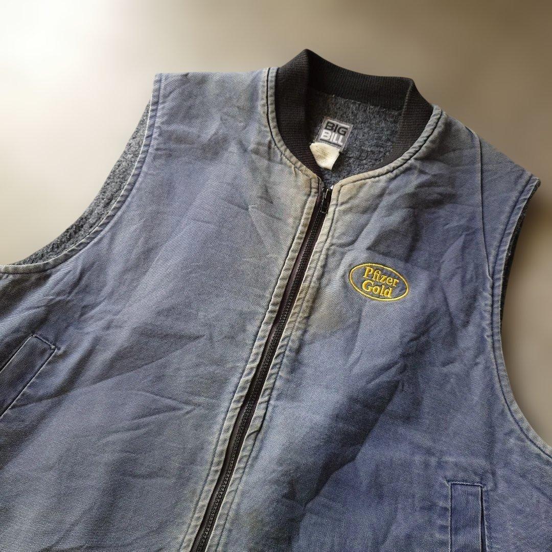 ■商品名BIGBILL. ■色ネイビー ■サイズL ■肩幅 48 cm ■身幅 65 cm脇下採寸 ■着丈 68 cm首下より採寸 ■袖丈 cm ■素材 コットン ポリ ●商品説明 アメリカのワークブランド ビッグ ビルの ダックベストになります ネイビーからフェードした 色やけ 汚れがとても 雰囲気の良い品です 胸にはボディにマッチした イエローの企業ロゴ 背中にも 入り とても 雰囲気がいいです