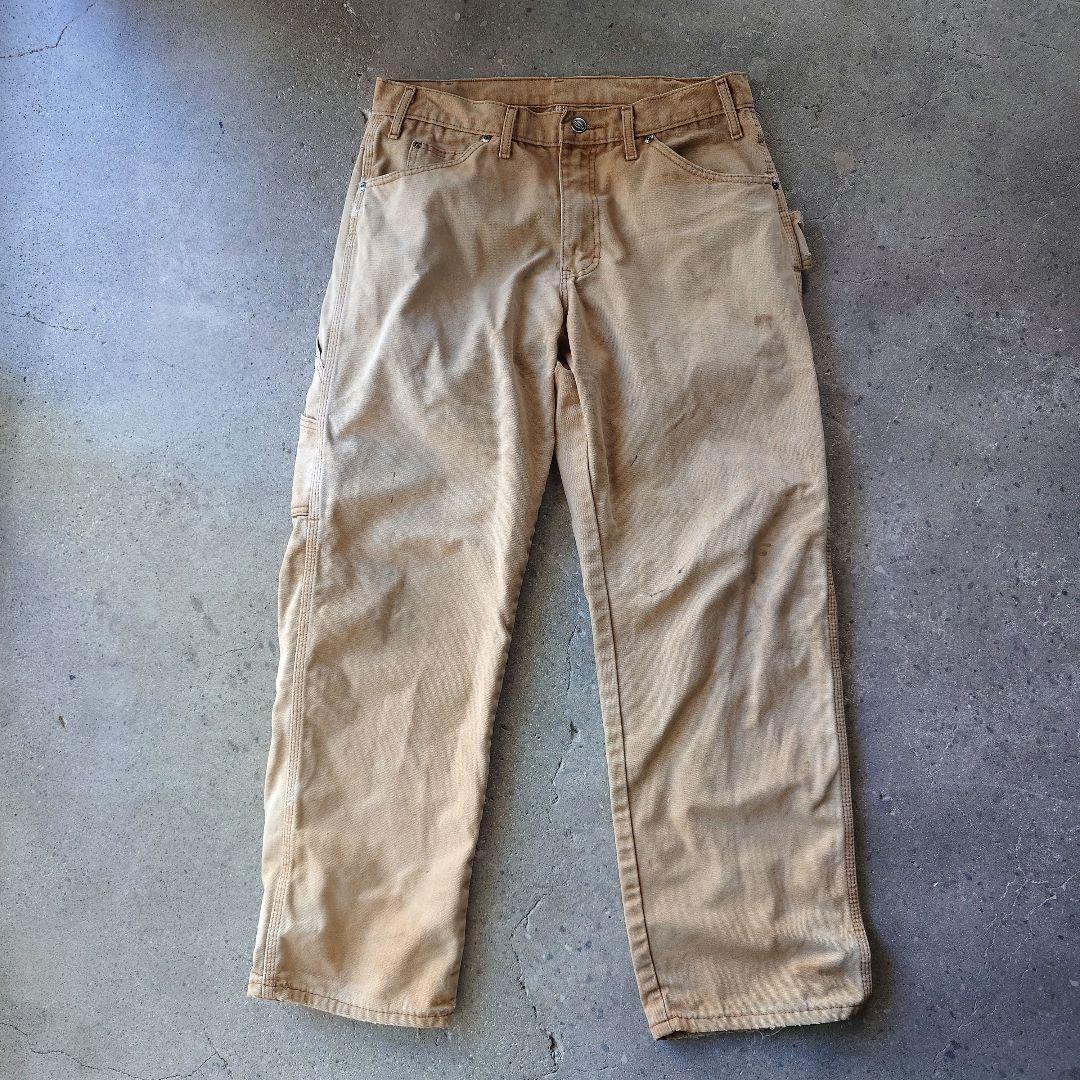 ■商品名dickies ■色キャメル ■サイズ w32インチL30インチ ■ウエスト 88 cm ■股上27 cm ■総丈100 cm ■裾幅 22cm ■素材 コットン ●商品説明 ディッキーズの海外仕様のワークパンツになります 実際のワーカーが使用していたハードな汚れやダメージ 色落ちが雰囲気の良い お品です 中古の雰囲気ものの商品のためやぶれ ダメージなどございますので 古着慣れしている方はご検討のほどお願いいたします