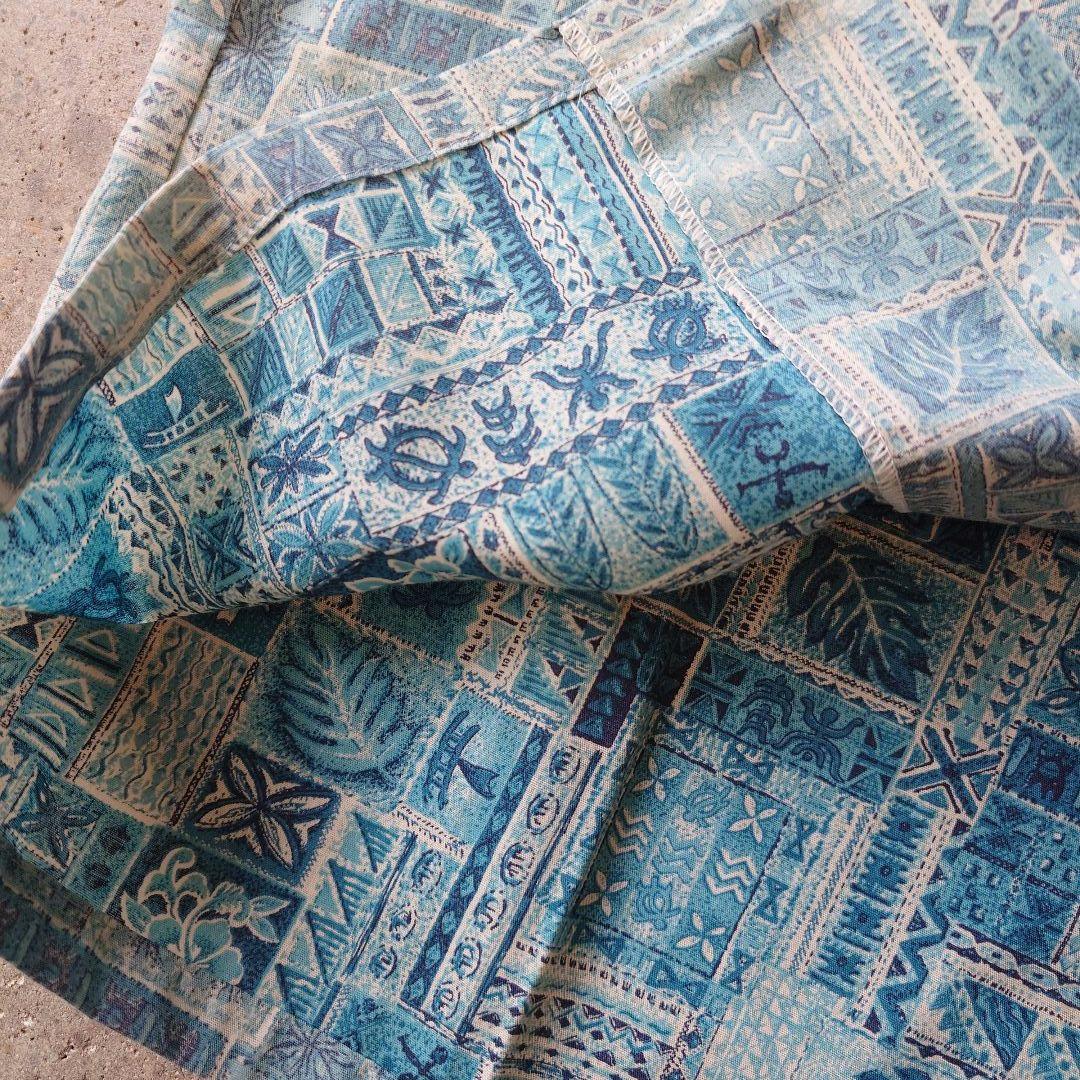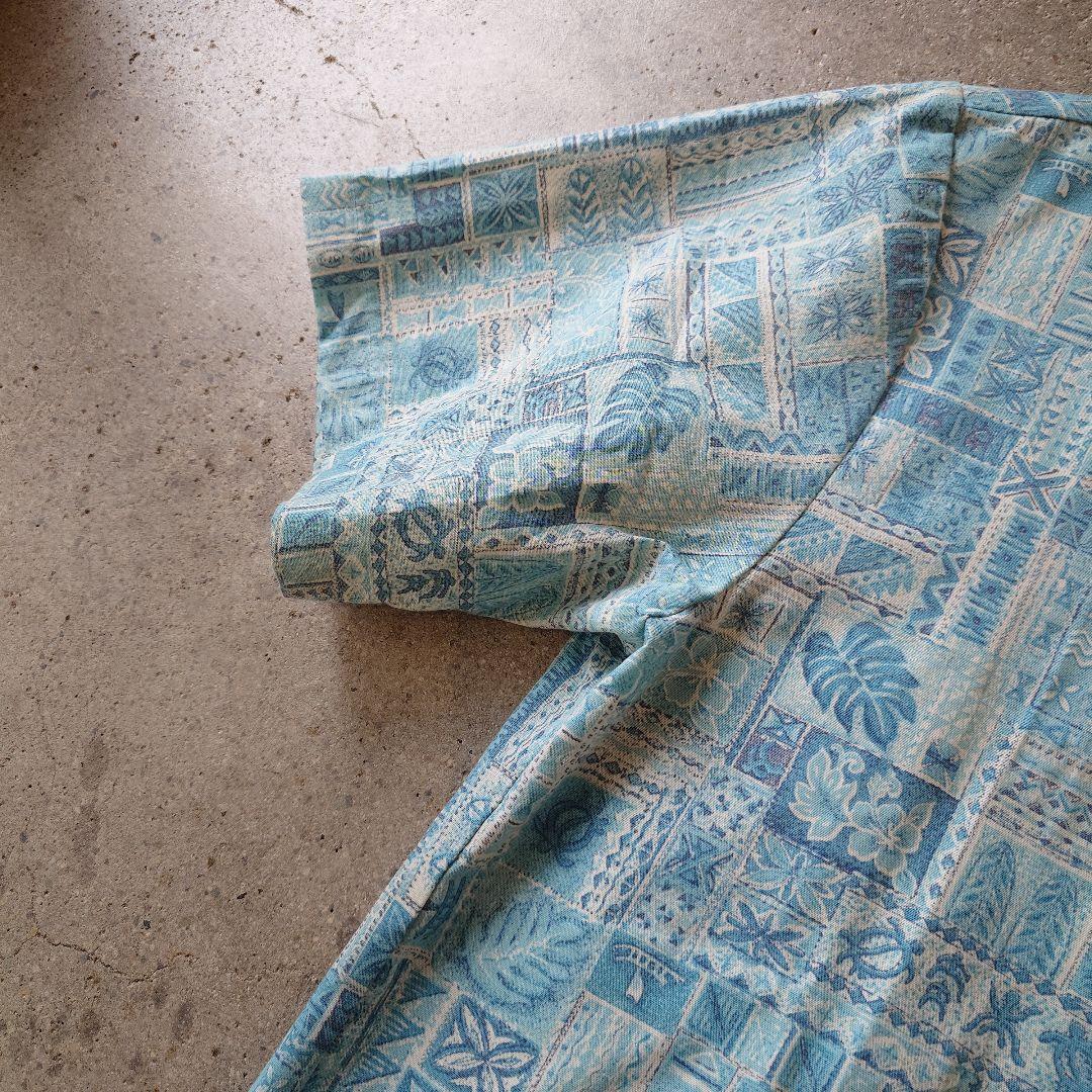 ■商品名ky’s ■色ブルー ■サイズM ■肩幅 51cm ■身幅 56 cm脇下採寸 ■着丈 72 cm首下より採寸 ■袖丈 24 cm ■素材 コットン ポリ ●商品説明 古着のアロハシャツになります メイドインハワイのハワイ ブランドです コットンのリバースプリントで裏地を使った伝統的な手法です バディックの柄でとても合わせやすいから です ほぼ使用のない綺麗なお品です