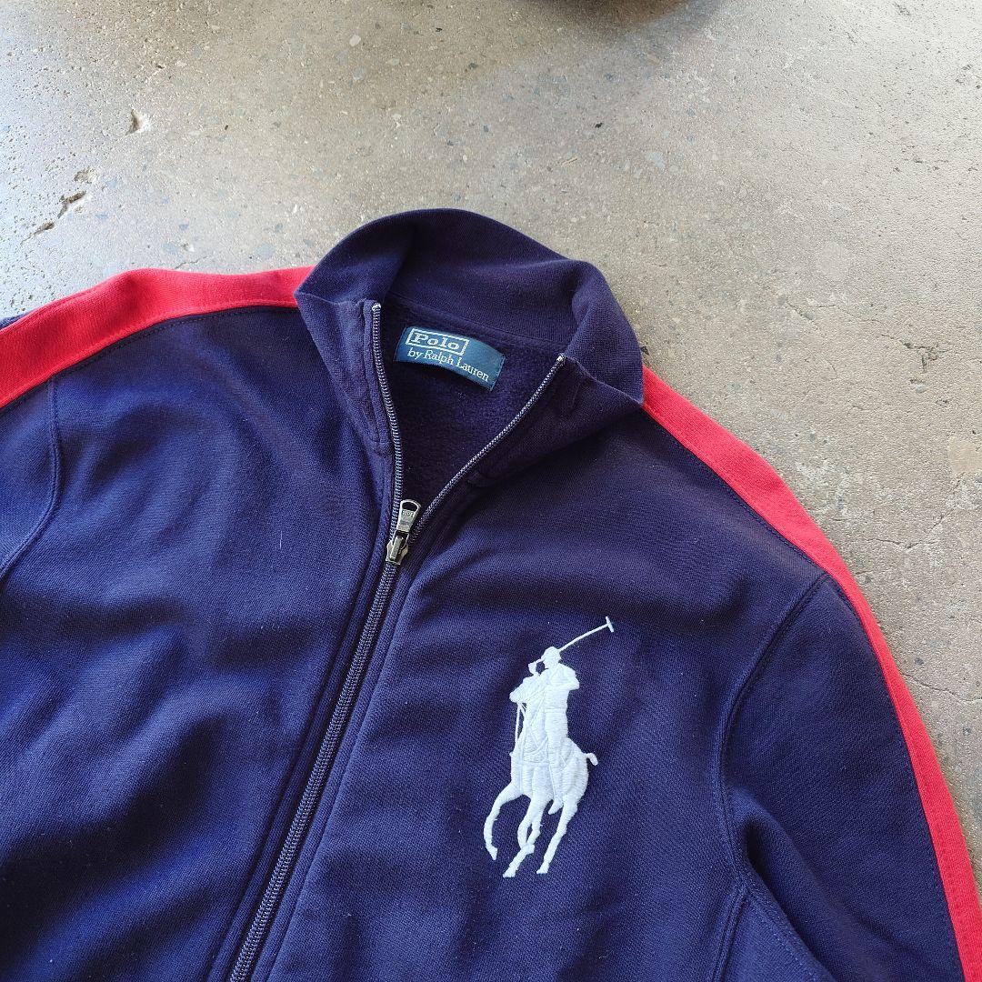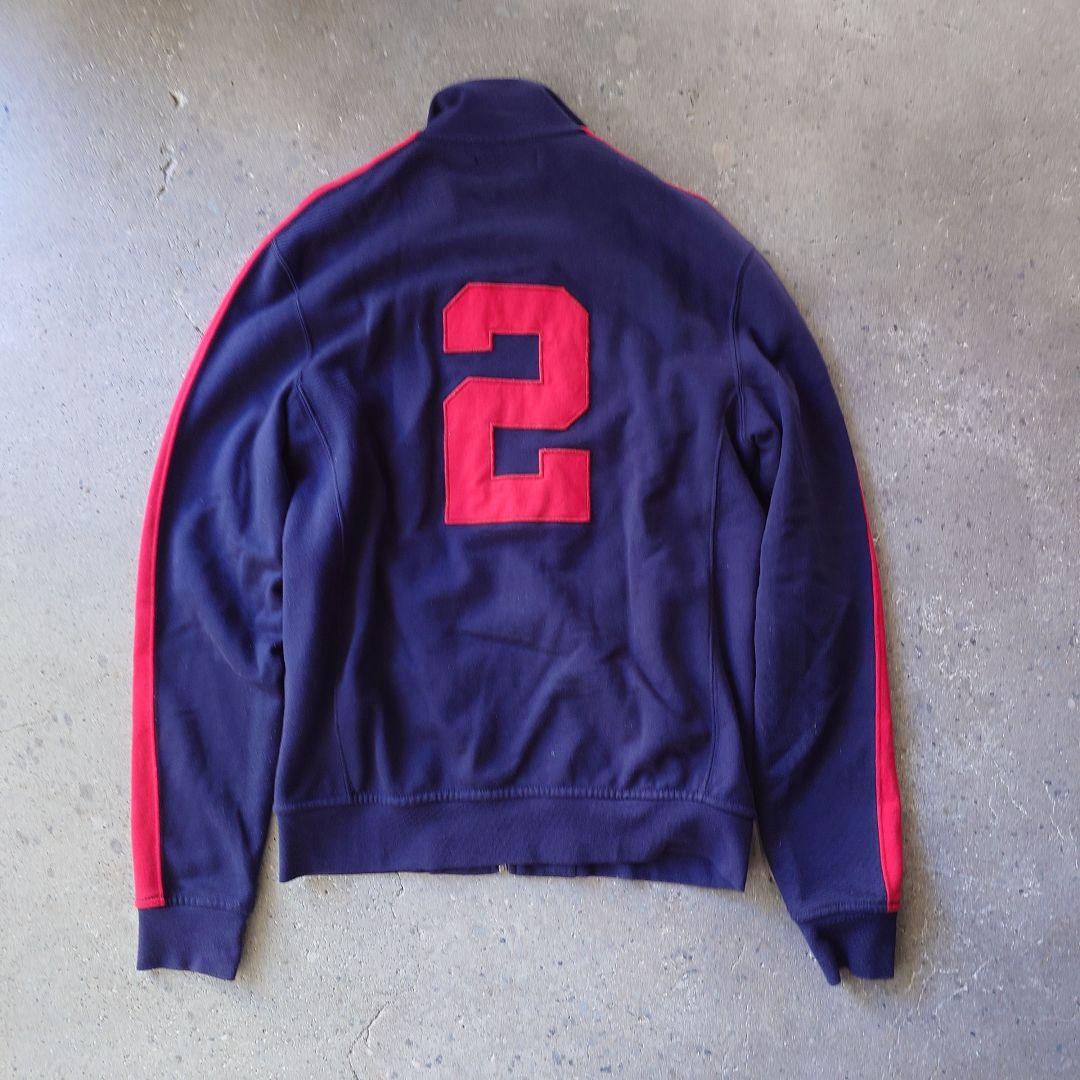 ■商品名POLO RALPHLAUREN ポロラルフローレン ■色ネイビー ■サイズM相当 ■肩幅 46cm ■身幅52 cm脇下採寸 ■着丈 67 cm首下より採寸 ■袖丈 68cm ■素材 コットン ●商品説明 プロラルフローレンのトラック ジャケットになります サイドに太い赤のラインのポニーのビッグロゴ シンプルでインパクトがある ナンバーのアップリケ インパクトがあります すこし毛玉など使用感 ございますが 全体的にきれいなお品です。 目立つ汚れや傷などはございません