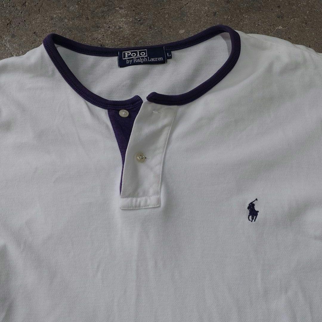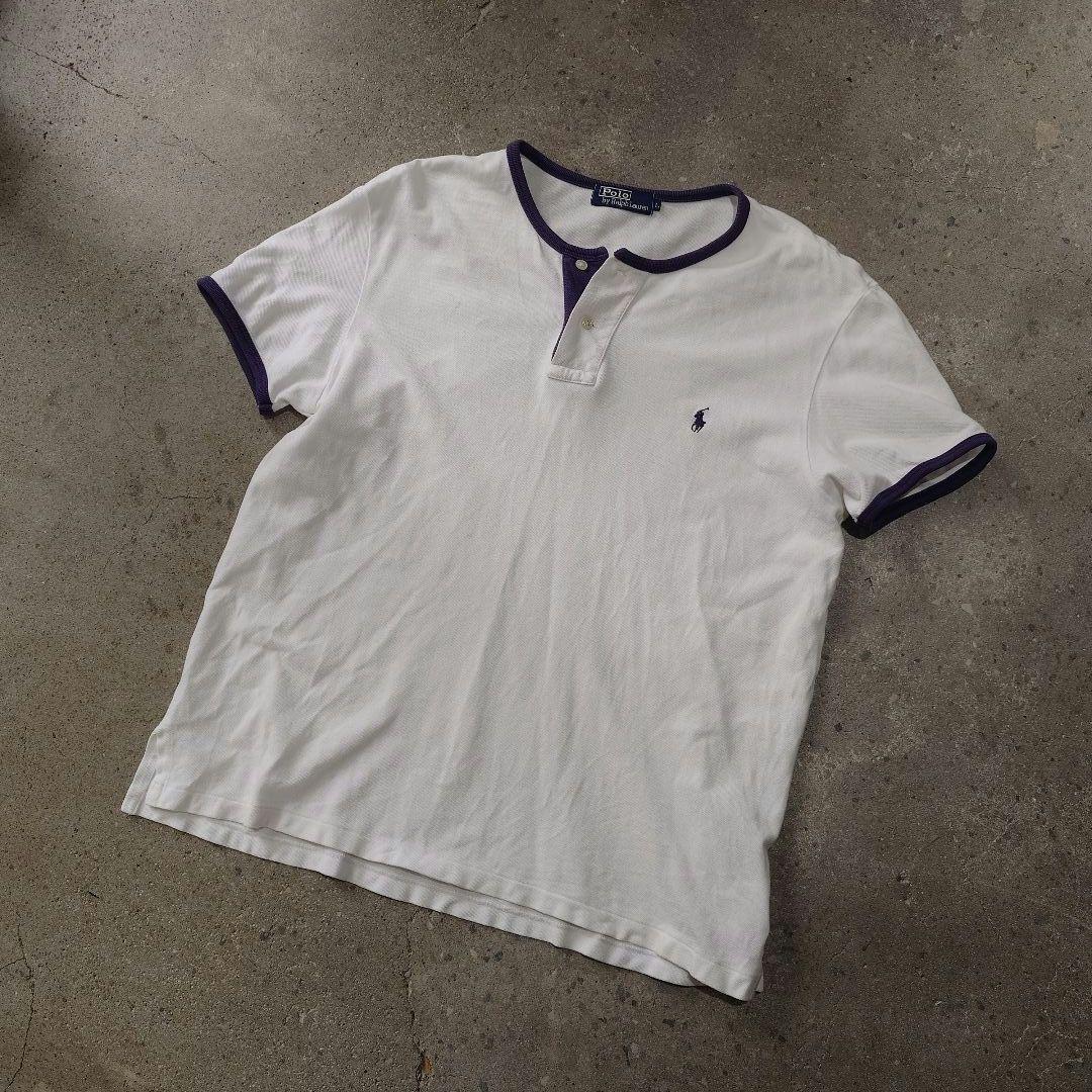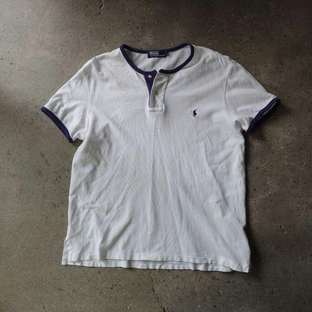 ■色白 ■サイズL ■肩幅 46cm ■身幅 48 cm脇下採寸 ■着丈 65 cm首下より採寸 ■袖丈 19cm ■素材 コットン ●商品説明 ポロラルフローレンの鹿の子の T シャツになります 白にネイビーのパイピングがとても綺麗な配色です ヘンリーネックで首元スッキリ 着ていただけます これから夏に向かって 使いやすいアイテムです 目立つ汚れもなく綺麗なお品です