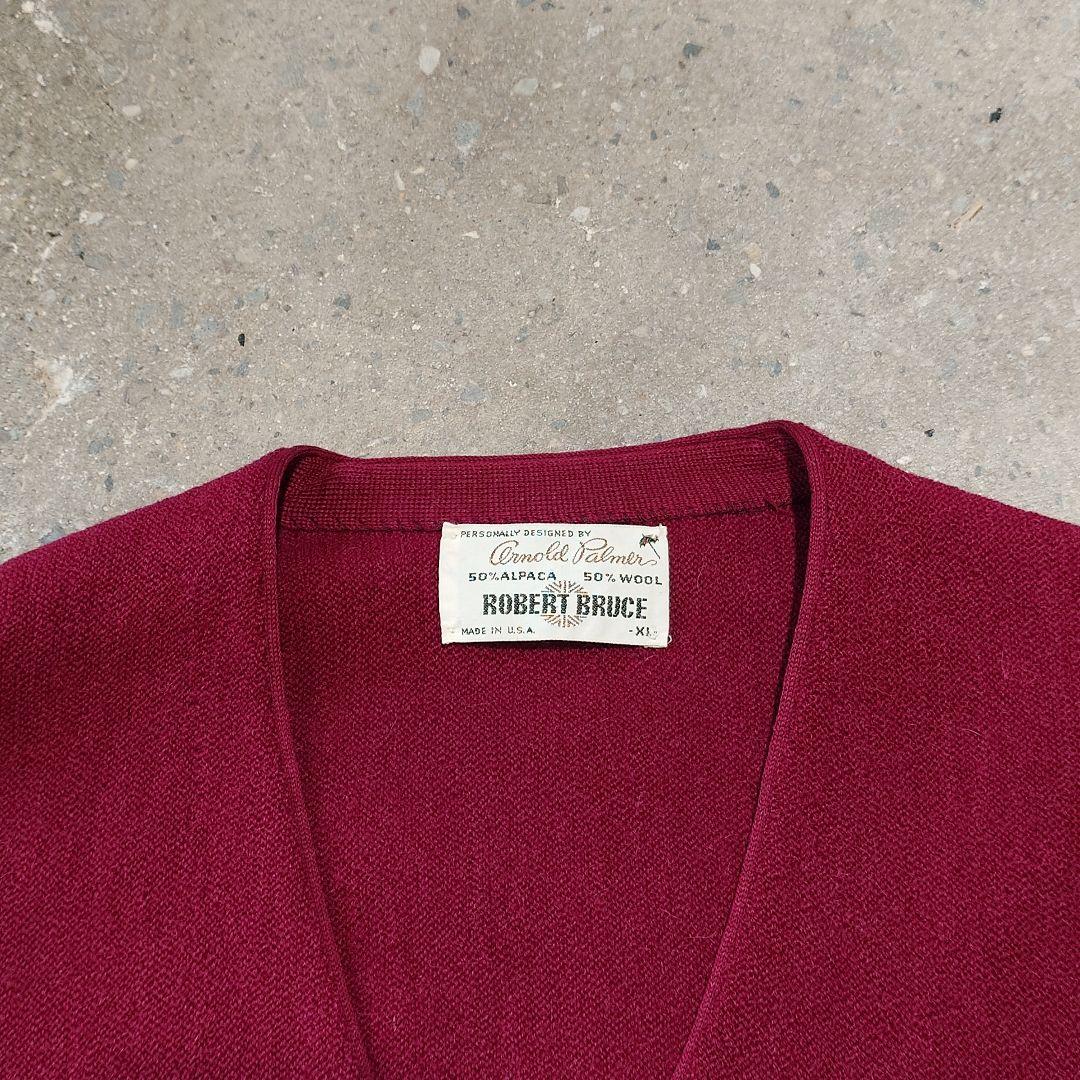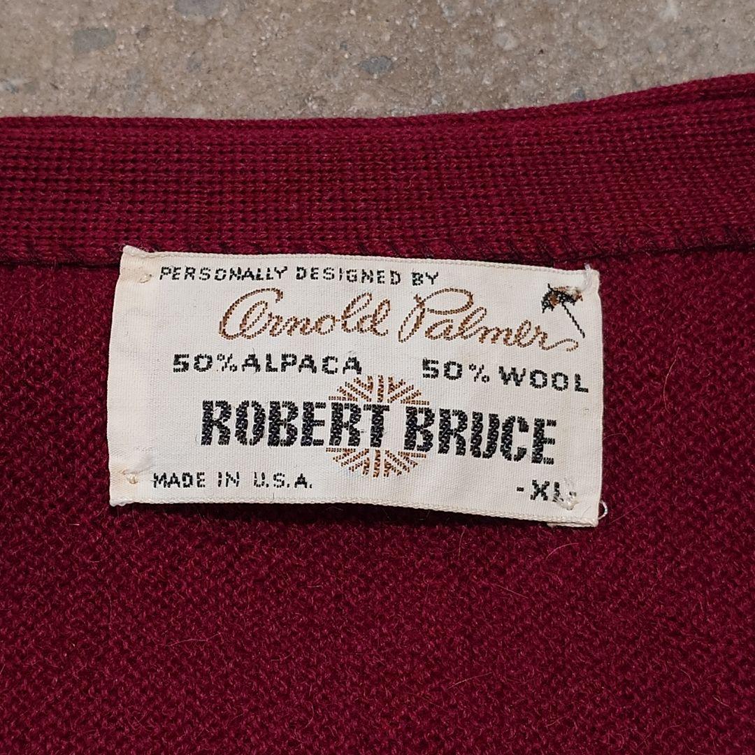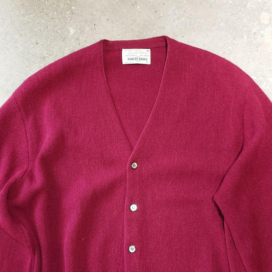 ■商品名robert bruce ■色バーガンディ ■サイズXK ■肩幅 54cm ■身幅 62 cm脇下採寸 ■着丈70 cm首下より採寸 ■袖丈 68 cm ■素材 アルパカ 50ウール50 ●商品説明 ロバート ブルースのニットカーディガンになります アーノルドパーマー などの生産も行う アメリカの老舗のニット メーカーです 希少な アメリカ製のお品になります シャリとした肌触り はとても気持ちがよく春先に 風通しがよく来ていただけます 古いものですが 状態もよく目立つ ダメージ 汚れなどもございません