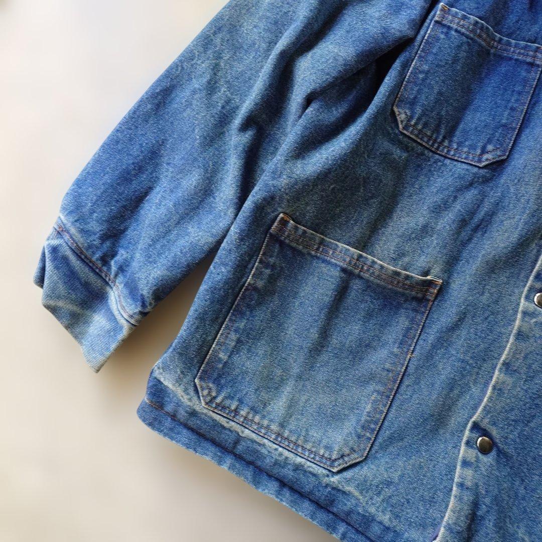 ■商品名シルバーステイトインダストリー ■色 ■サイズ ■肩幅 58 cm ■身幅 66 cm脇下採寸 ■着丈 78cm首下より採寸 ■袖丈 64cm ■素材 コットン ポリ ●商品説明 シルバーステートインダストリアル社のデニムの チョアジャケットになります 囚人の作業着 ワークウェアとして作られた カバーオールになります とても良い雰囲気の良い色落ちです 裏地の生地には抜け方のダメージがございます 写真 にてご確認ください
