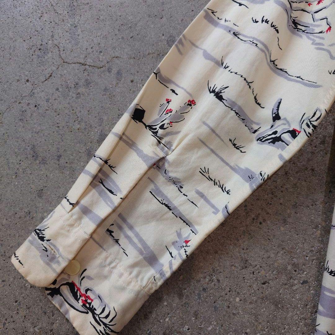 ■商品名スターオブハリウッド ■色アイボリー ■サイズM ■肩幅 46 cm ■身幅 51cm脇下採寸 ■着丈 69cm首下より採寸 ■袖丈 63 cm ■素材 コットン ●商品説明 スターオブハリウッド 東洋エンタープライズ復刻版になります 人気のハゲタカのデザインです 長袖はとても珍しいです 袖口に若干の黄ばみがございます ハンガー つきます。