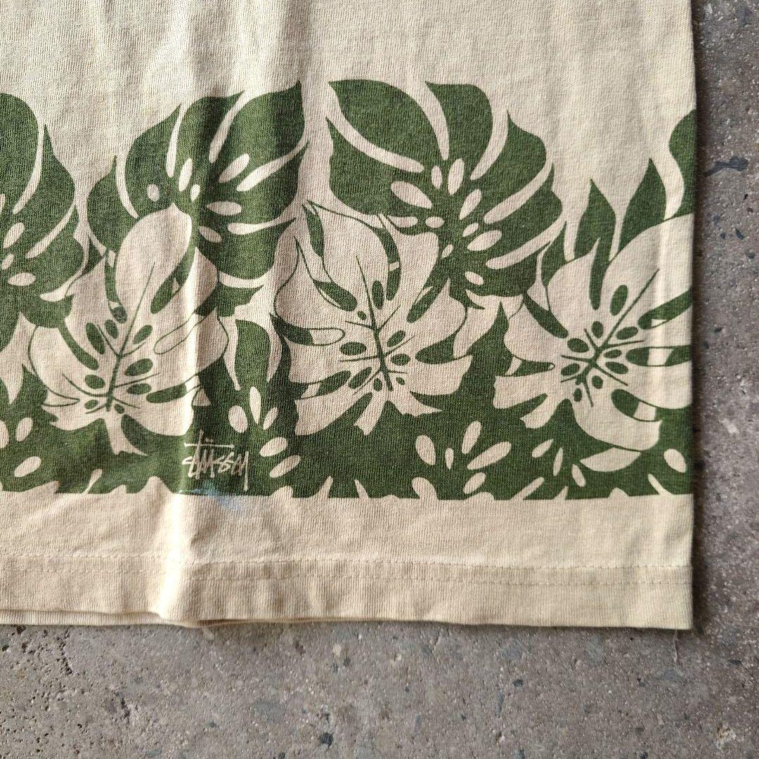 ■商品名stussy ■色ベージュ ■サイズM ■肩幅 50 cm ■身幅 50 cm脇下採寸 ■着丈 65 cm首下より採寸 ■袖丈 19 cm ■素材 コットン ●商品説明 ゴールドのステューシー青タグ アメリカ製 90年代になります ベージュのカラーに シンプルがハイビスカスのプリントがとてもかっこいいデザインで す 目立つ ダメージじゃなく綺麗なお品です