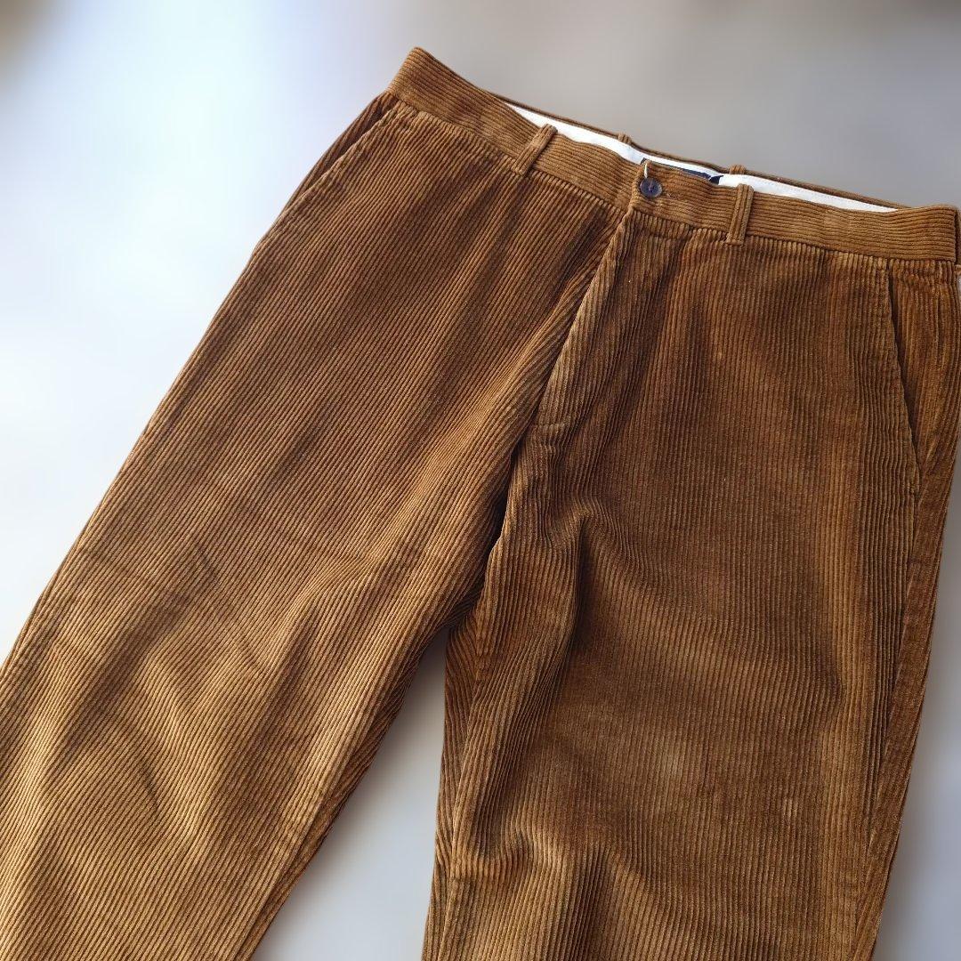 ■商品名blue harbor ■色キャメル ■サイズw34 インチL 29 インチ ■ウエスト 86 cm ■股上 34 cm ■総丈 97 cm ■股下 71 cm ■素材 コットン ●商品説明 ユーズドの太畝のコーデュロイ やや光沢のある素材のいい コットンコーデュロイ ワイドでズドンと太めにはいていただけます。 目立つ汚れもなくきれいなお品です。
