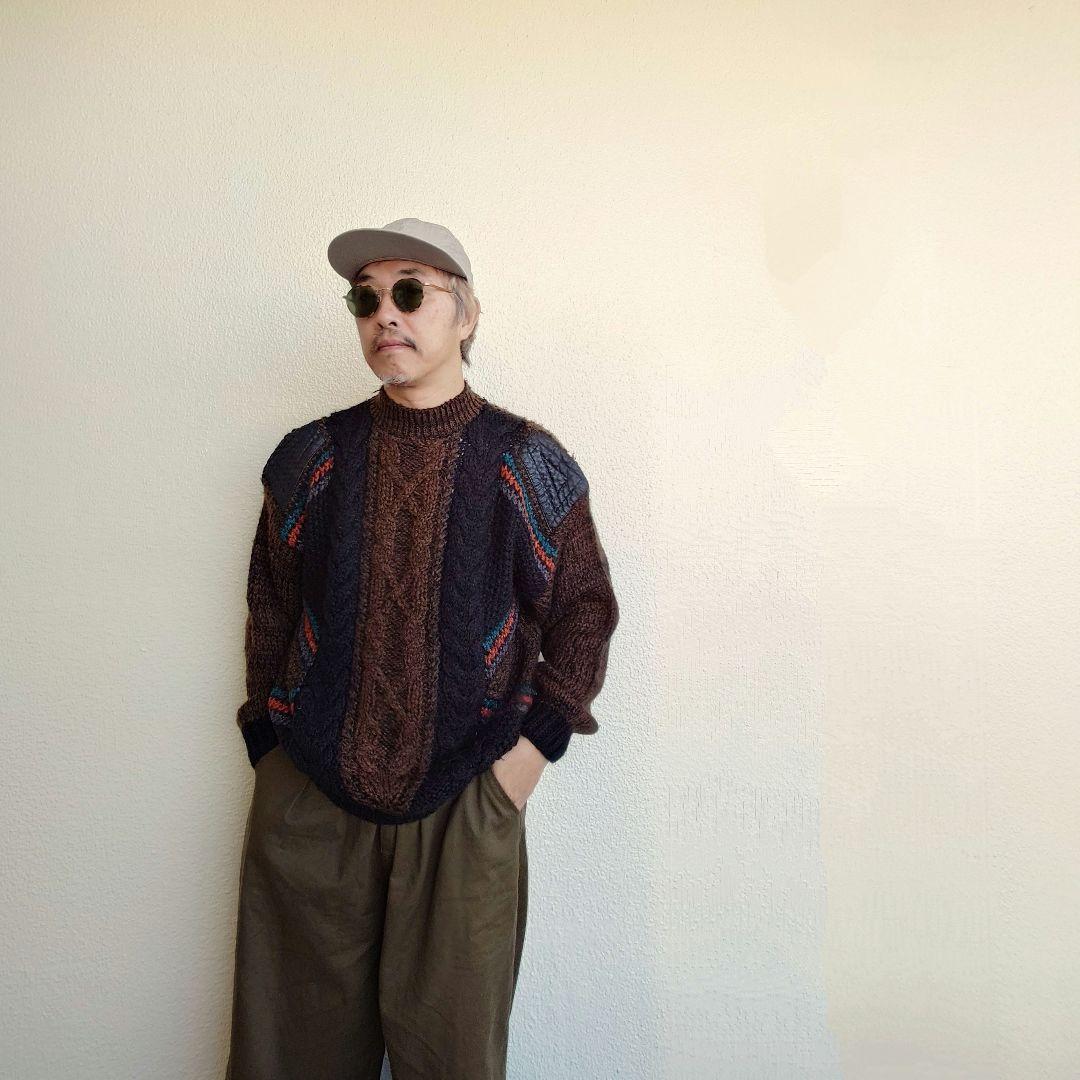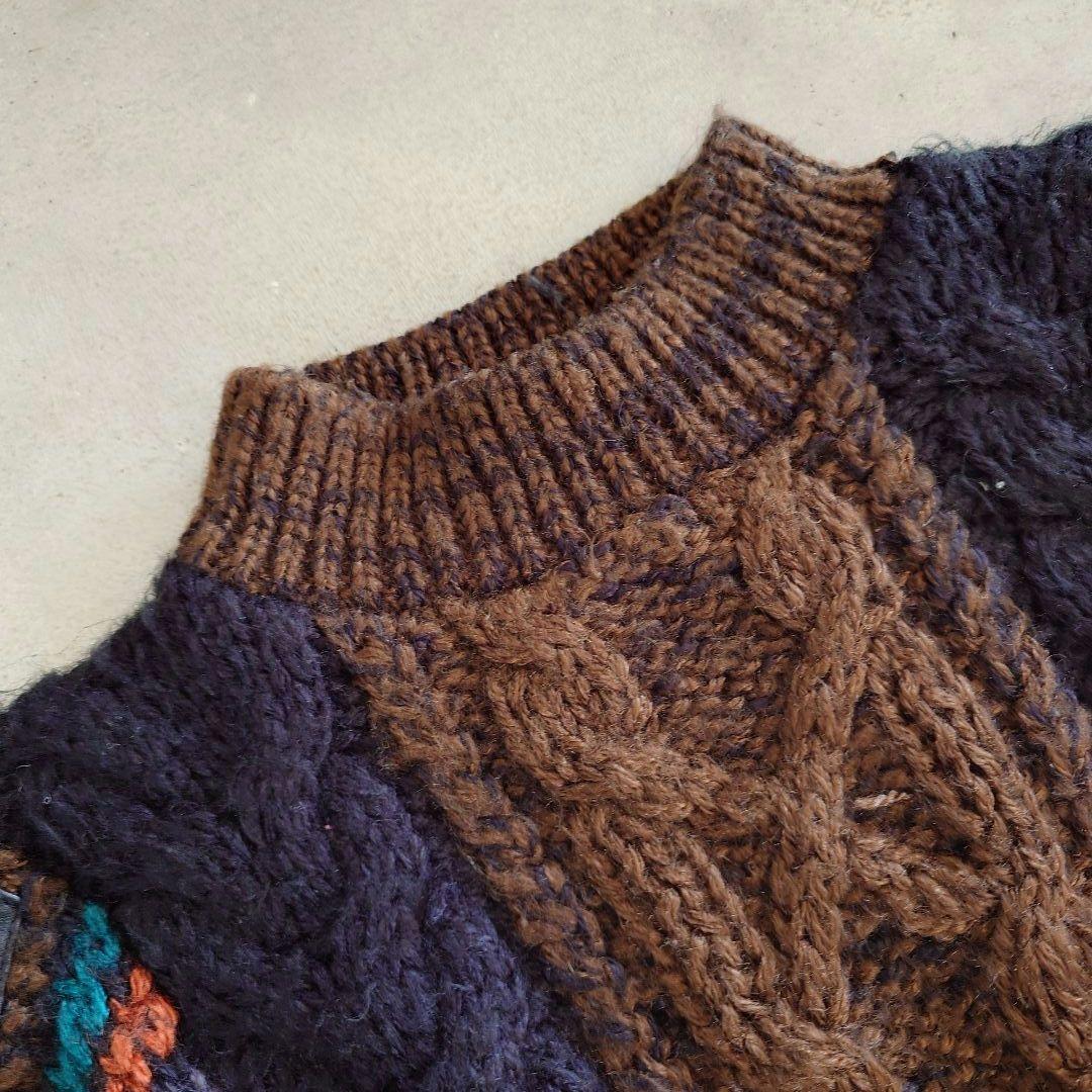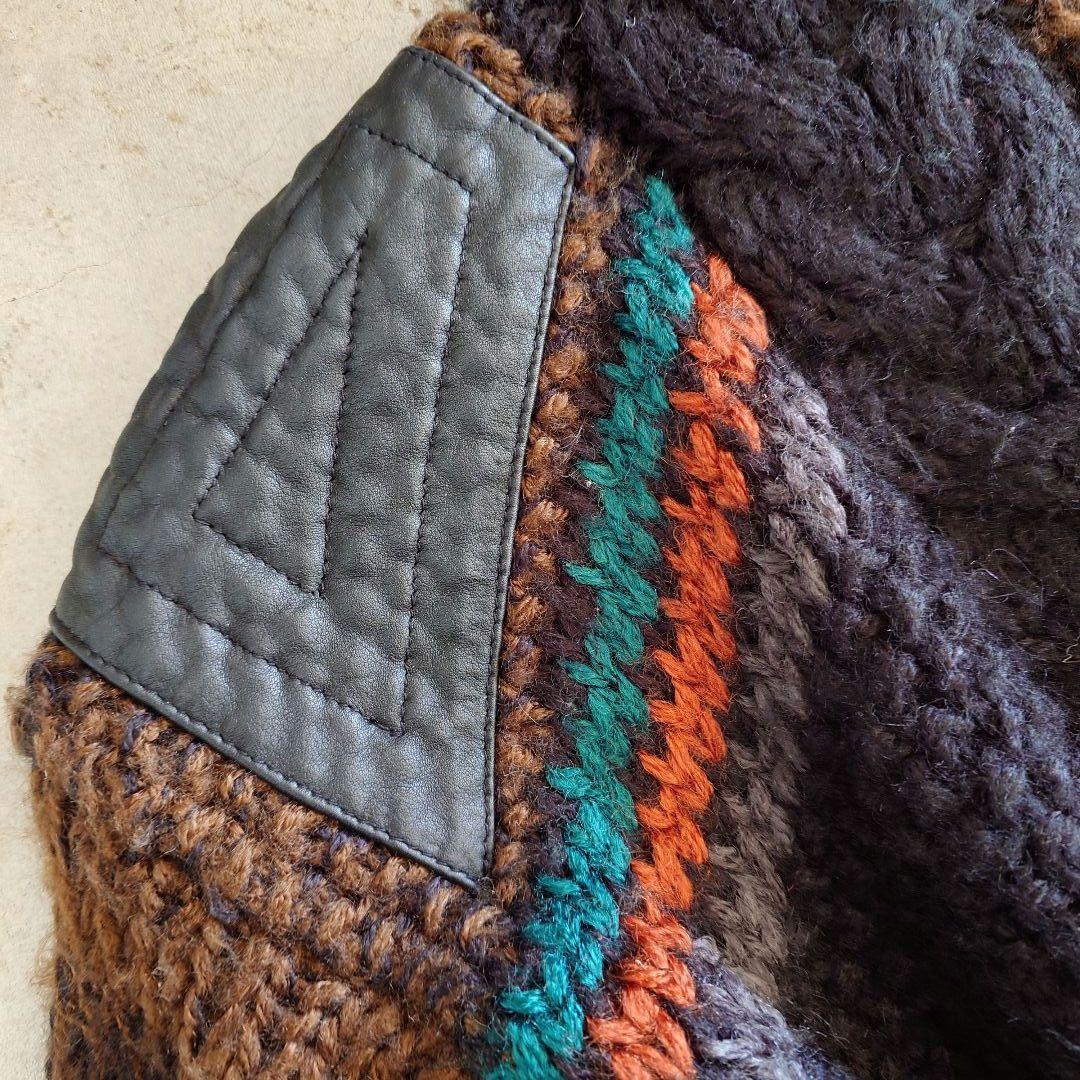 Used Leather Patch Knit 古着 ユーズド レザーパッチ デザイン ニット セーター L相当