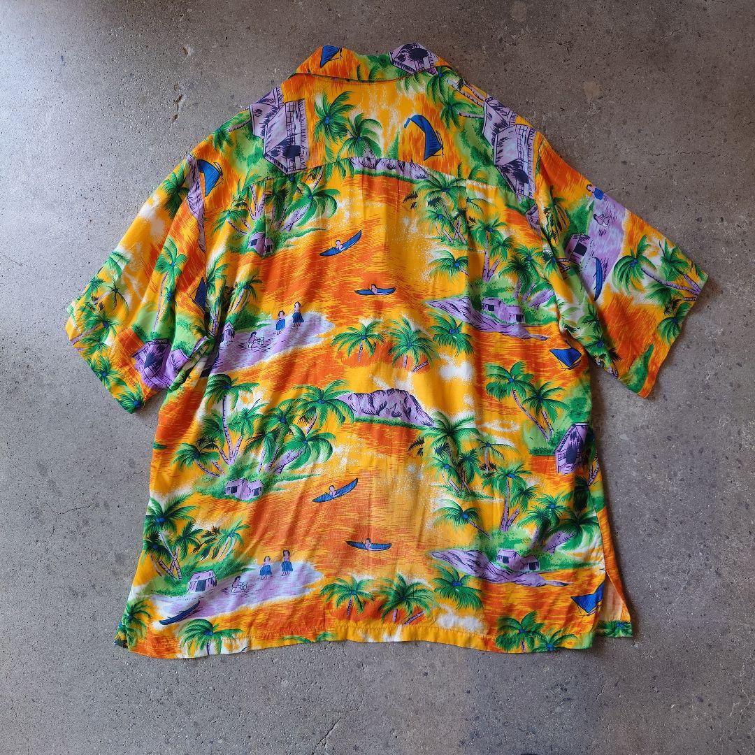 ■商品名newyork ■色オレンジ ■サイズL ■肩幅 48 cm ■身幅 61 cm脇下採寸 ■着丈 69 cm首下より採寸 ■袖丈 26 cm ■素材 レーヨン ●商品説明 古着の レーヨン アロハシャツになります とても質の良いレーヨンでとろっとした肌触りがとても気持ち良い生地です オレンジのきれいな色合いです 裾スリット 部分 若干の破けはございますが目立つ汚れなどございません
