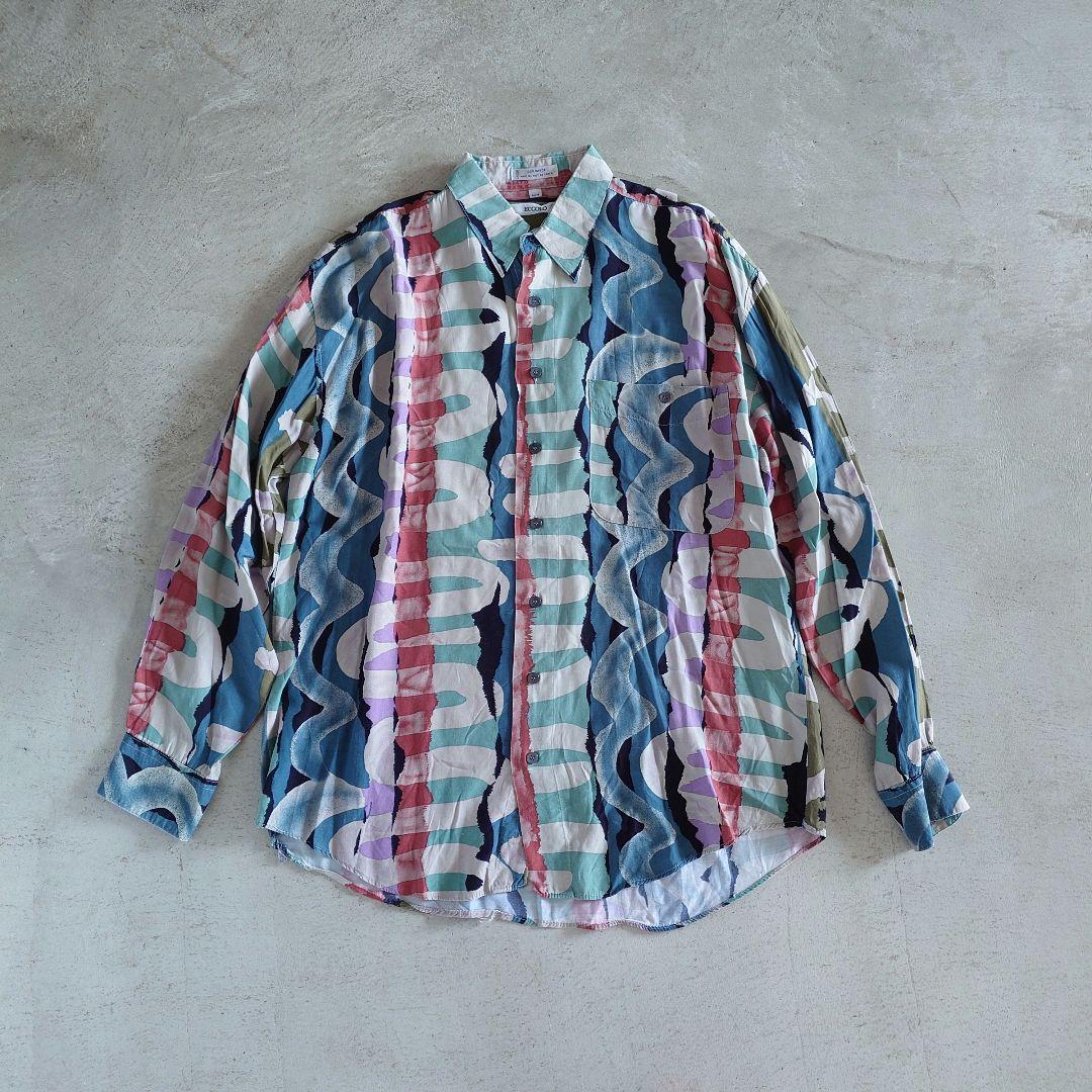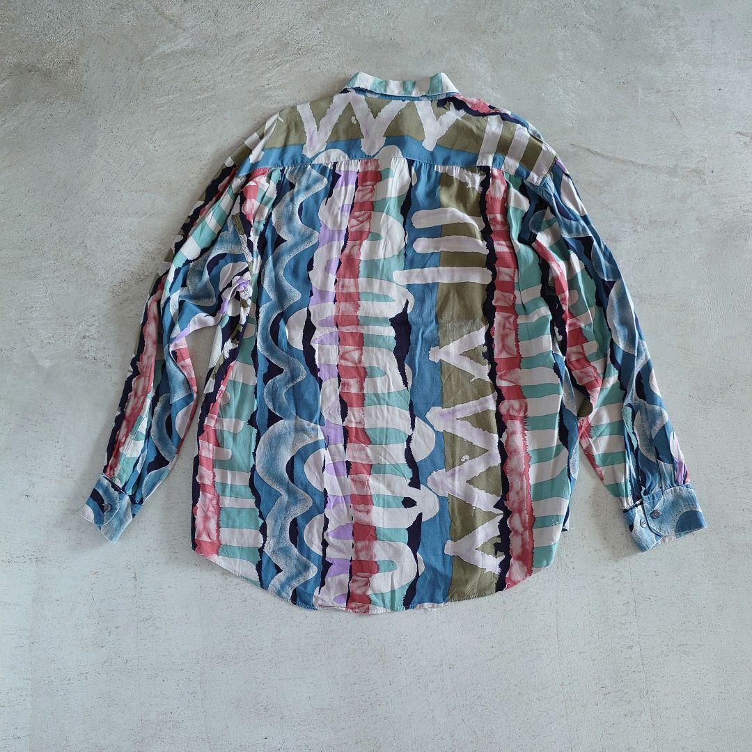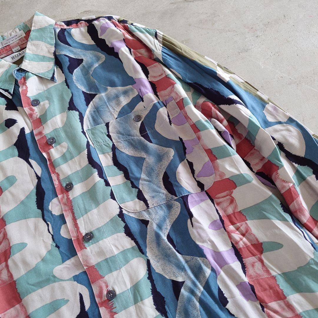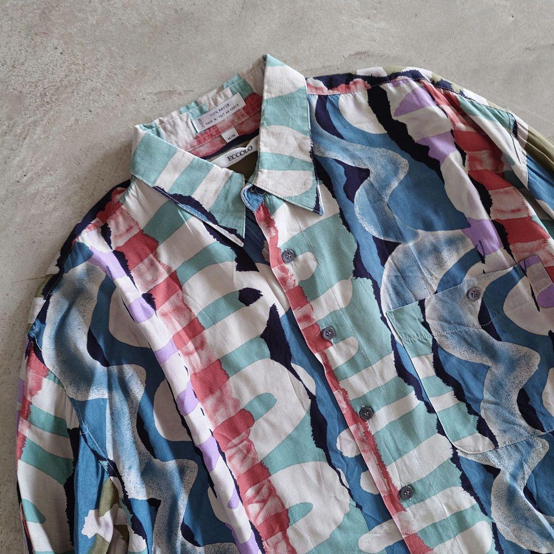 used rayon pattern shirts M 古着レーヨン 総柄 長袖シャツ