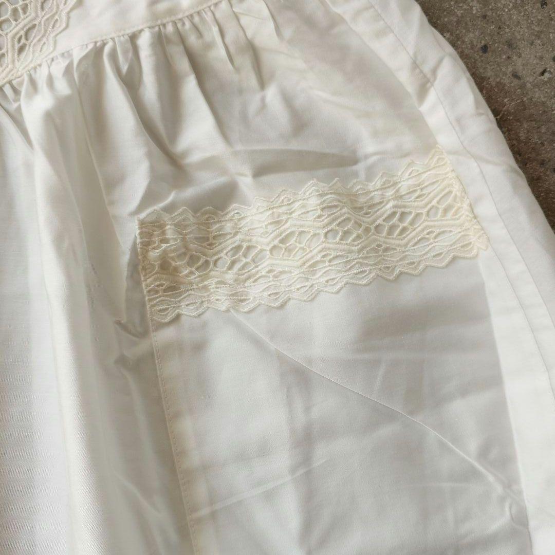 ■商品名ysl ■色白 ■サイズ ■肩幅 cm ■身幅 40cm脇下採寸 ■着丈 90 cm首下より採寸 ■袖丈 cm ■素材 コットン ポリ ●商品説明 イヴサンローランのエプロンワンピースになります フロントにイヴサンローランの刺繍や レースのデザインがとても可愛い お品です 通常のエプロンとしても ワンピースとしても使っていただける デザインです 後ろを縛って止めるタイプになっております 新品の未使用品になります